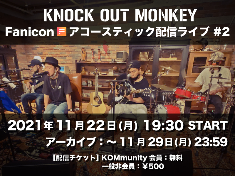 KNOCK OUT MONKEYオフィシャルファンコミュニティ「KOMmunity」にてアコースティック配信ライブ#2の開催が決定!!