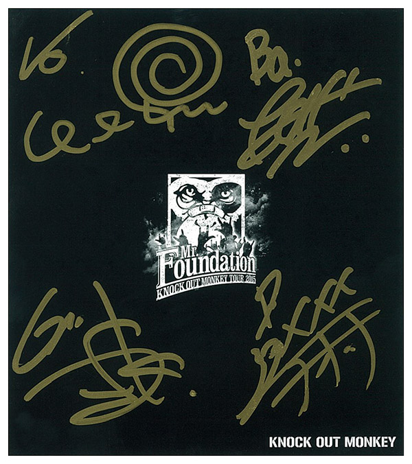 TOUR 2015 "Mr. Foundation"の各会場にて、KOMの各作品をご購入いただいたお客様に、CD1タイトルにつき1枚、メンバー直筆のオリジナルミニサイン色紙をプレゼントします。 色紙は今回のツアータイトルを入れた限定デザインになっております。 是非チェックしてみてください!!